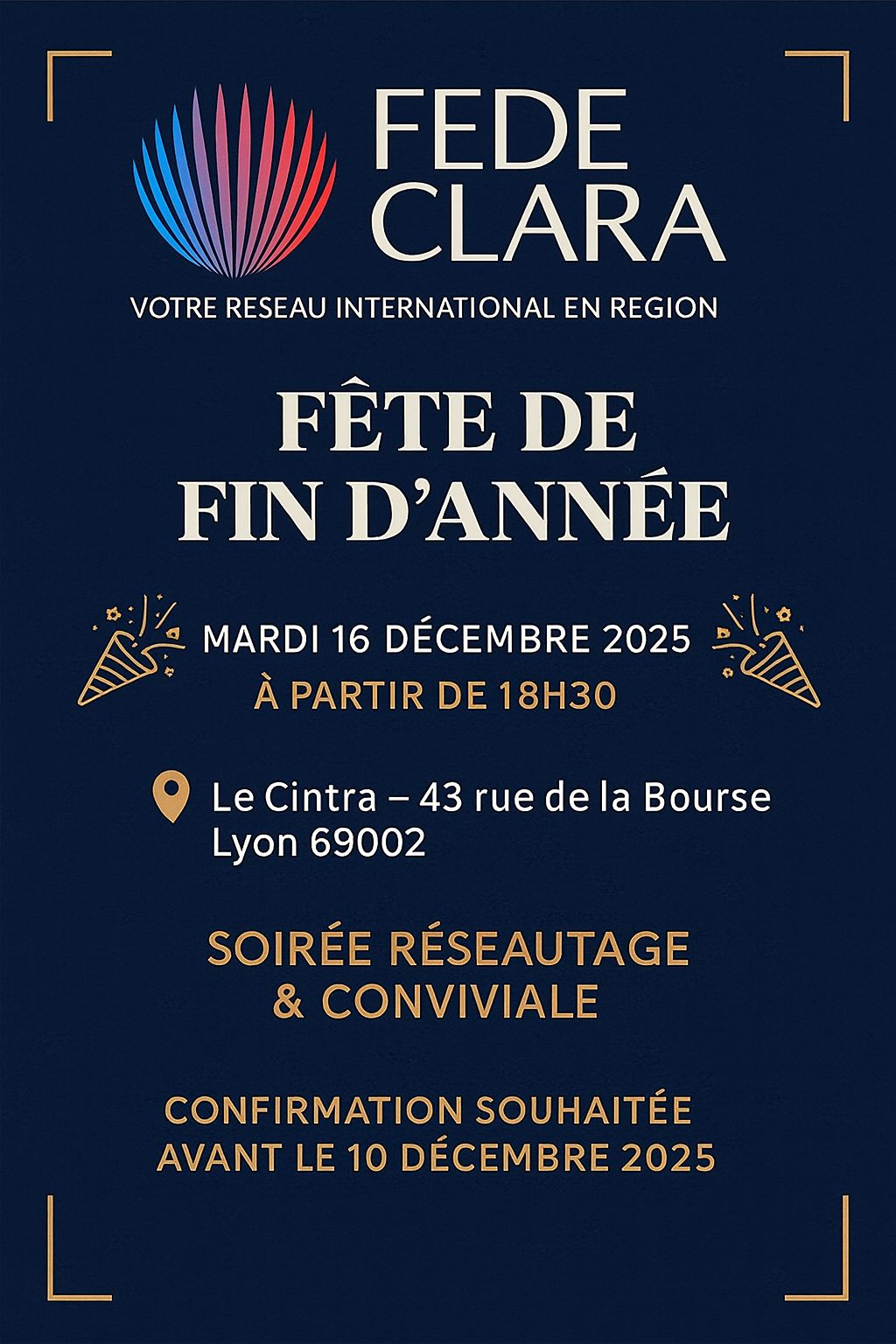 Nous avons le plaisir de vous inviter à la Fête de Fin d’Année de la FEDECLARA – Page Officielle, qui se tiendra :